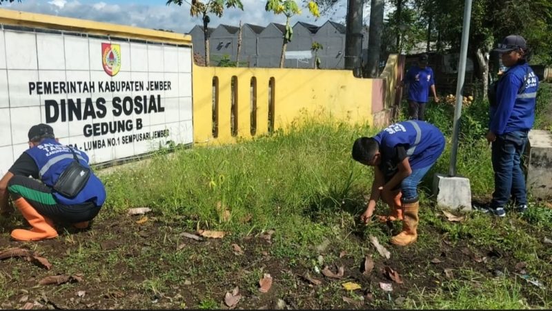 Sahabat Tagana Jember Kerja Bhakti di Halaman Dinsos Gedung B